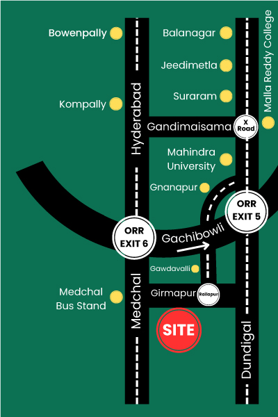 Sri Suba Nivas is strategically located at Girmapur (Railapur), near Medchal & Kompally, a rapidly growing residential and educational hub in North Hyderabad.